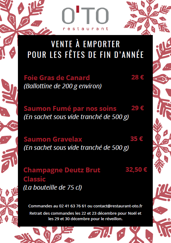 Passez commandes au 02 41 63 76 61 ou contact@restaurant-oto.fr